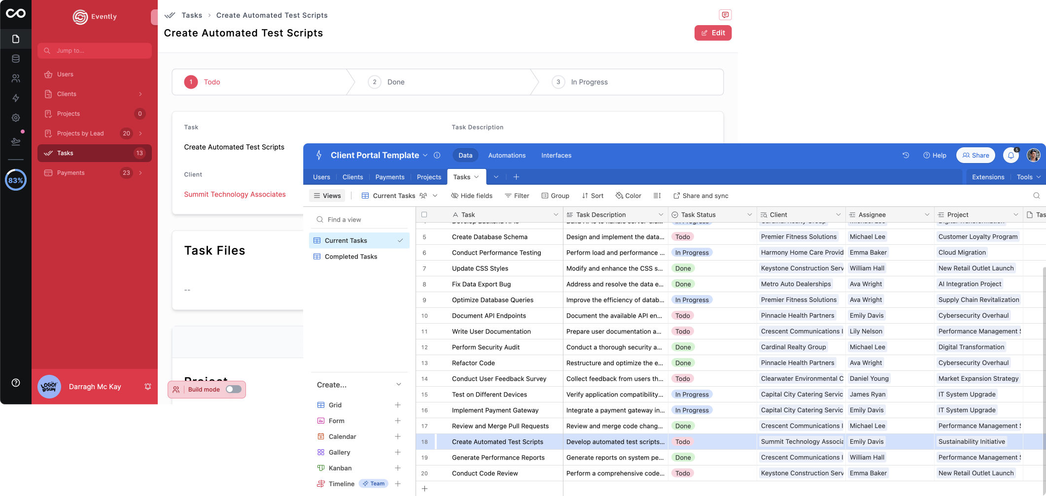 When you click on one of the records (rows, cards or items) in a View, Noloco's default action is to take you to a record view that represents all the information available for that row. Noloco adds default sections for some of the columns (fields) that it finds in your table, and adds related List components for linked fields, but all of this can be adjusted.