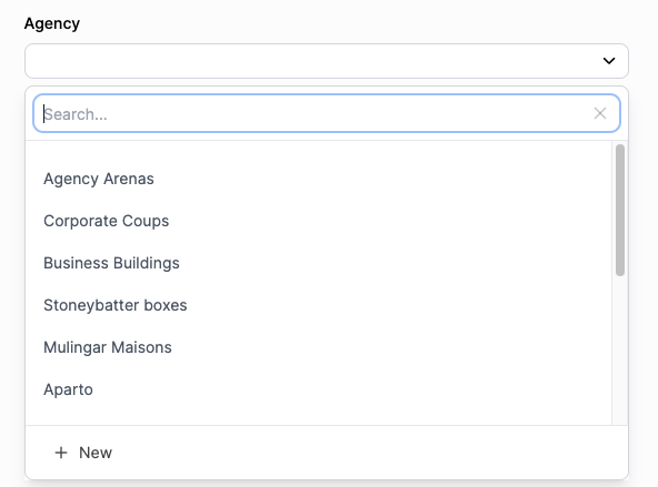 In the example below we are trying to select an **Agency** record, and the Agency's name is being used as the primary field.