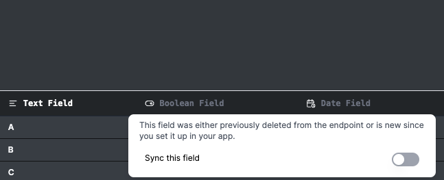The disabled fields will not be synced but will still be listed on the right of the table where they can be re-enabled. You will not be able to save your endpoint until you have either flattened or removed all nested object fields from the response.