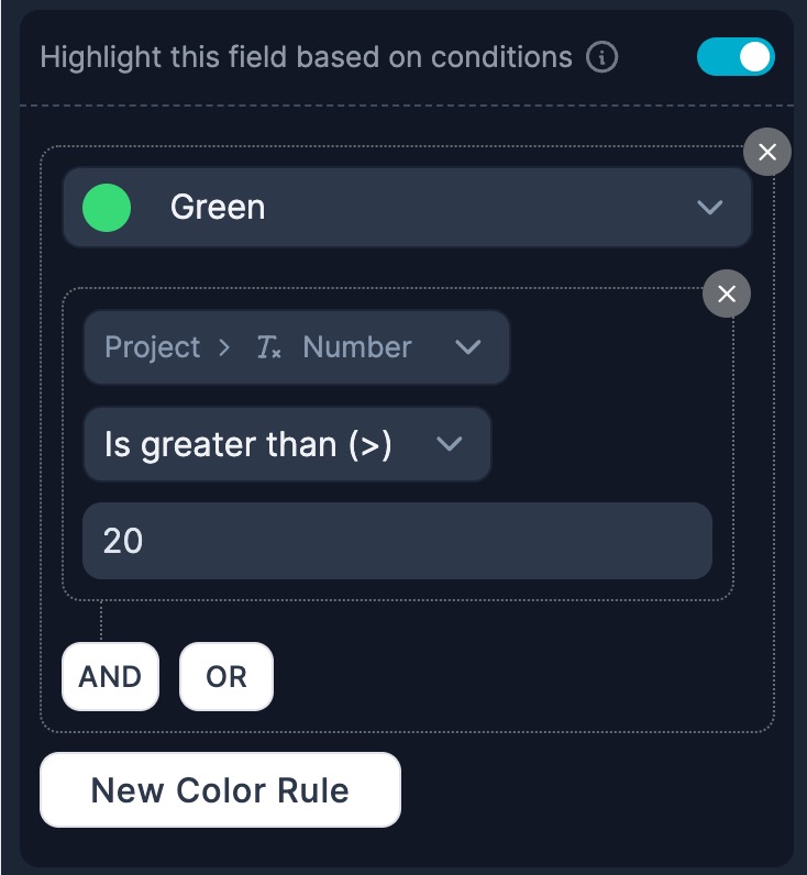 * **Select the Field**: Choose the field you wish to apply conditional highlighting to