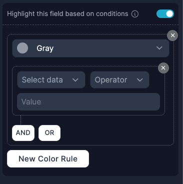 3. You will be presented with a blank condition setup. Here, you can define the conditions under which the field should be highlighted, including choosing specific colors for different scenarios.