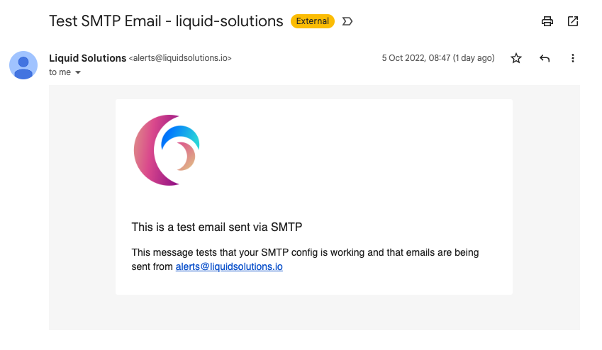 <figure><img src="https://319575345-files.gitbook.io/~/files/v0/b/gitbook-x-prod.appspot.com/o/spaces%2F-MifpIQWu0HCVYAt51oT%2Fuploads%2Fgit-blob-d15bad78496d337ca8d19070dc84335179b62327%2Ftest-smpt-email.png?alt=media" alt=""><figcaption><p>Test SMTP email</p></figcaption></figure>