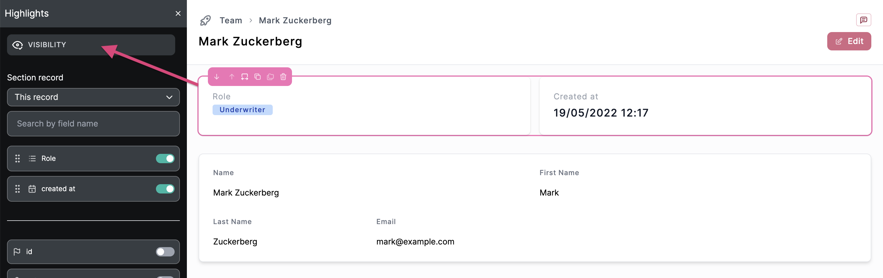 Builders can access the visibility settings for Views & record page components across their app when in edit mode. As a builder toggle on edit mode or press (cmd + e) for Macbooks or (ctrl+e) for Windows to access these settings.