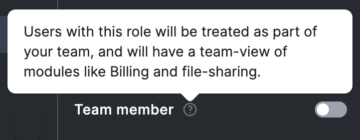 The Team Member flag setting on a User Role determines whether they are deemed an **Internal User or an External User**.