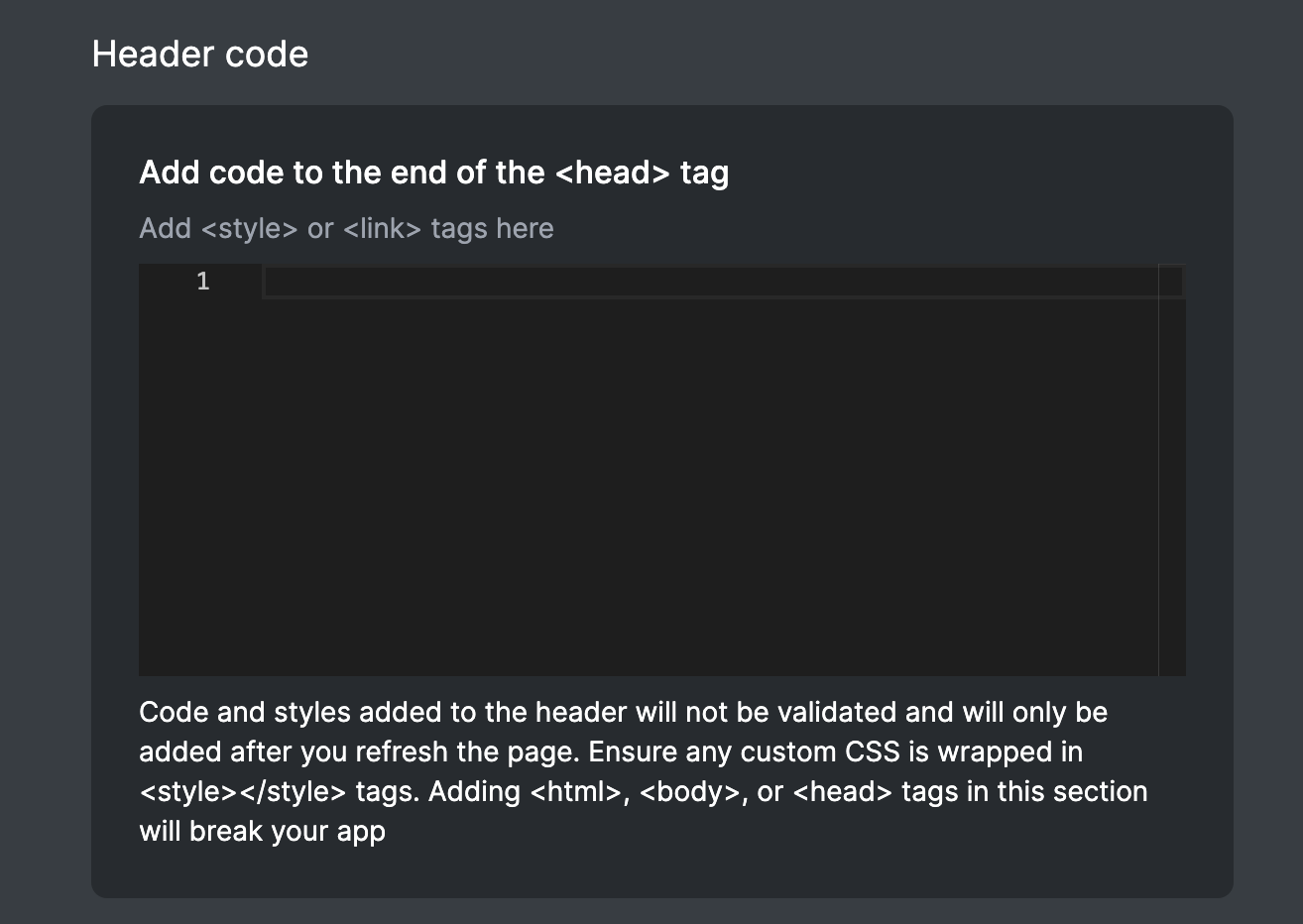 There are two sections designated for custom code: