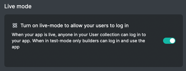 When you've finished designing, building & testing your App - you're ready to turn on Live Mode 🎉