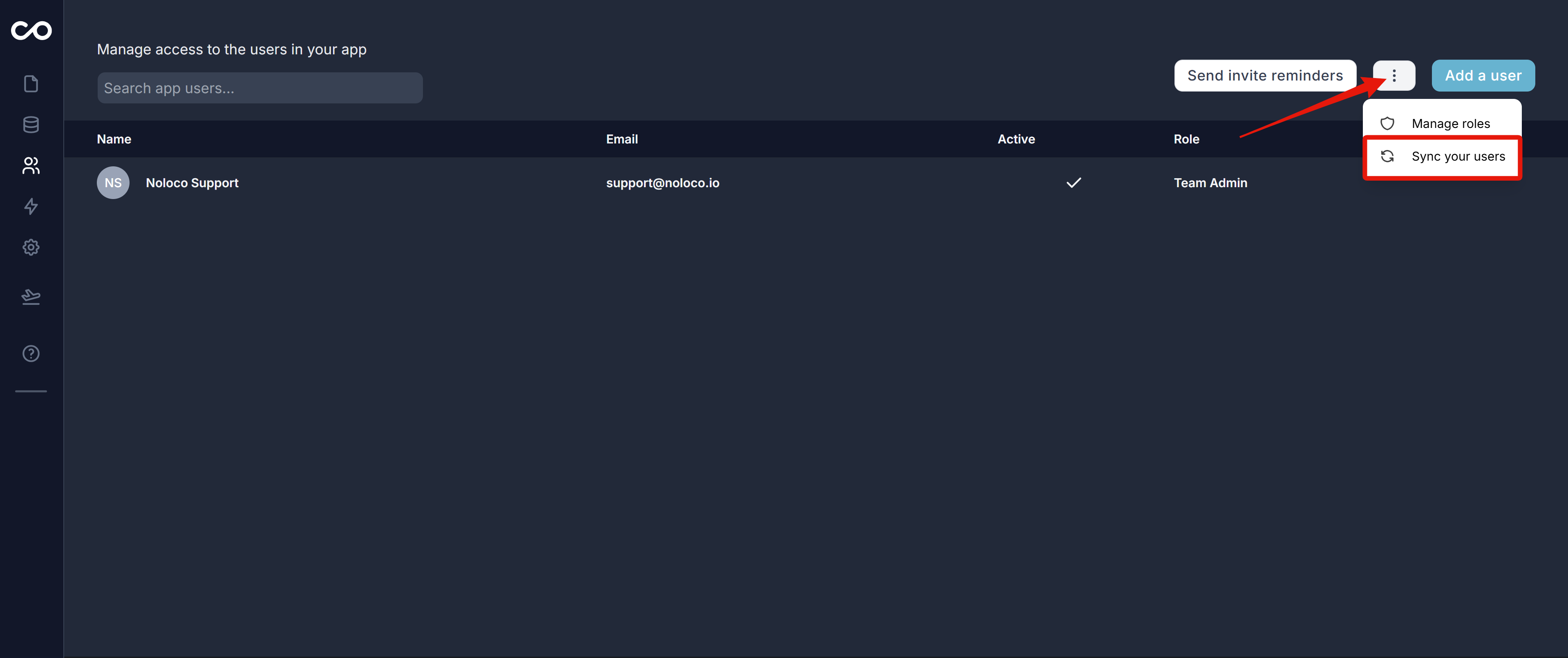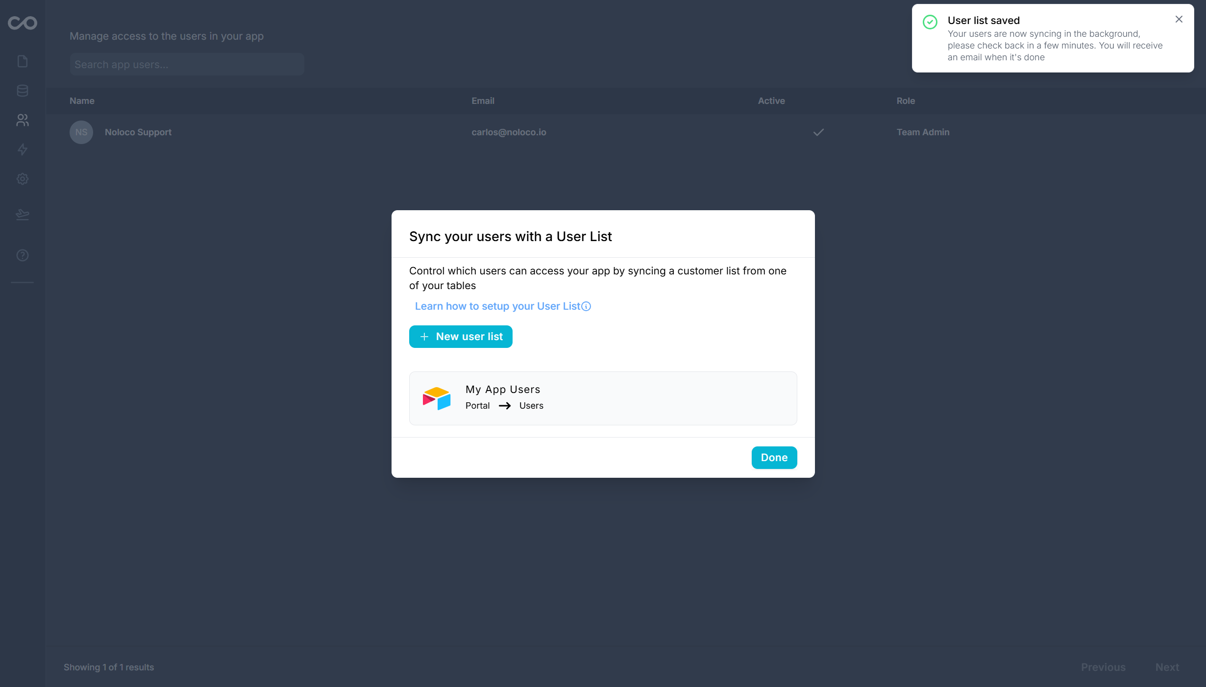 6. Your user information will soon start syncing and appear in the User section and your Noloco Users table (it may just take a minute or two).
