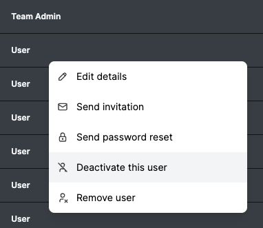 You will then see that the user has been deactivated in your User Table. Hovering over the Deactivated badge will tell you when the deactivation was done.