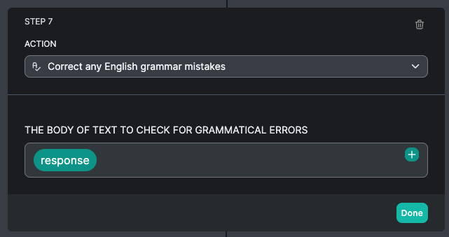 The 'Correct Grammar' action equips your app with an AI-powered proofreading tool, ensuring your textual content is not just meaningful but also grammatically impeccable.